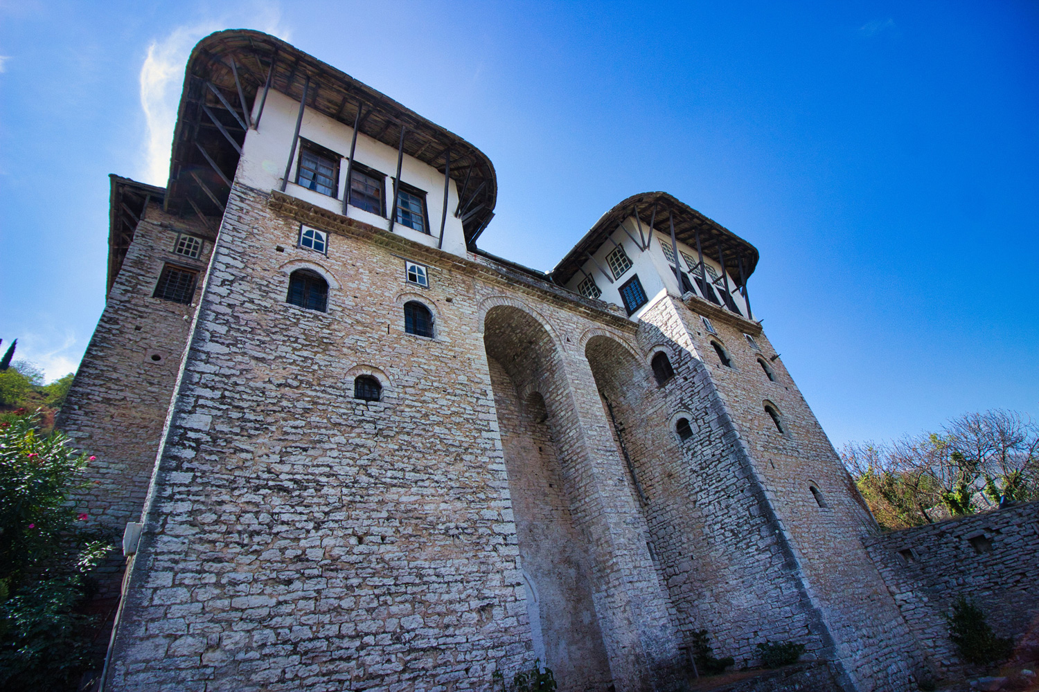 - Shtëpia e Zekatëve është një nga monumentet më të rëndësishme dhe më përfaqësuese të arkitekturës karakteristike gjirokastrite. E ndërtuar në fillim të shekullit XIX nga familja e pasur Zeko, ajo përfaqëson në mënyrë të shkëlqyer shtëpinë-kullë tipike të Qytetit të Gurtë, me mure masive guri, strukturë të lartë dhe hapësira të organizuara në mënyrë hierarkike sipas traditave të kohës. Shtëpia është e njohur për ndarjen e saj në katet e poshtme mbrojtëse dhe ato të sipërme të banimit, si dhe për dhomat e mëdha me dritare të shumta që ofrojnë pamje të hapura mbi qytet.