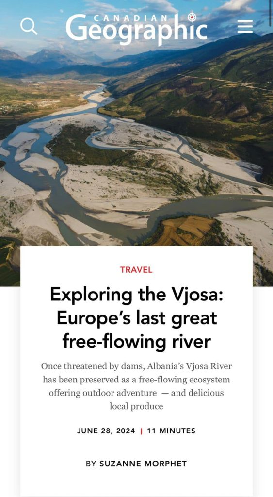 Canadian Geographic e cila e përshkruan Vjosën si një lumë jo si gji...
